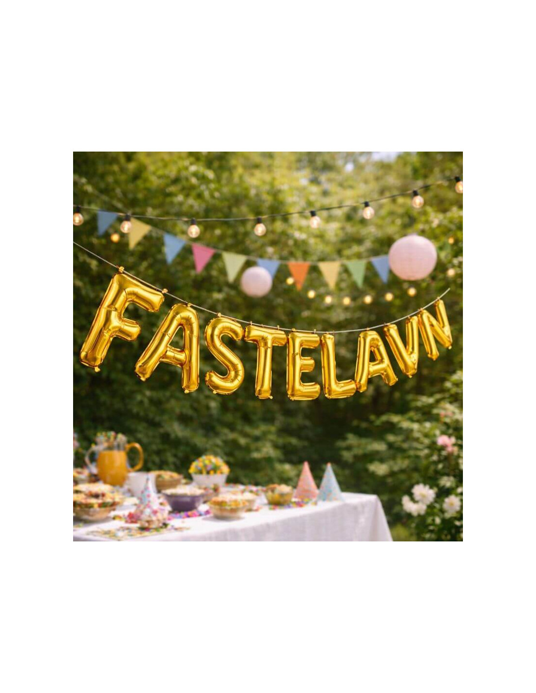Her får du det smukkeste ballonsæt som staver "FASTELAVN". Med vores flotte ballonsæt kan du virkelig imponere dine gæster med oppyntningen til jeres fastelavnsfest.