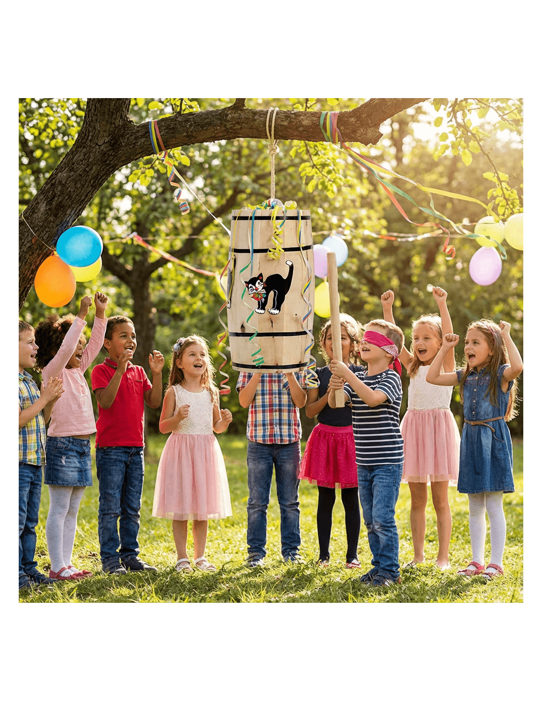 I de gode gamle dage, valgte man at putte en levende kat inden i fastelavnstønden. Da dette både er rigtig synd for katten og ulovligt, så kunne man jo nøjes med et par katte lavet af pap.