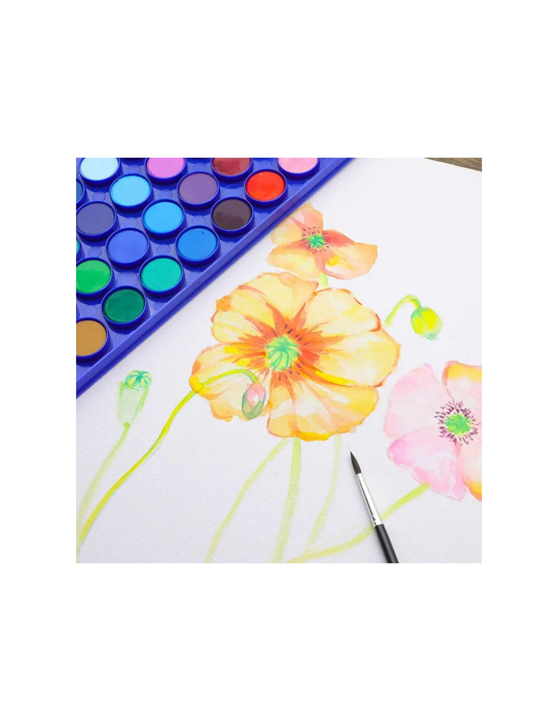Her får du et komplet akvarelsæt med 3 pensler i forskellig størrelse. Sættet har 36 forskellige farver, så man virkelig kan udforske hele farveuniverset.